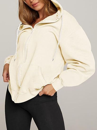 - Zip up hoodie for women, full zipper, long sleeve, loose sweatshirt jacket with pocket.